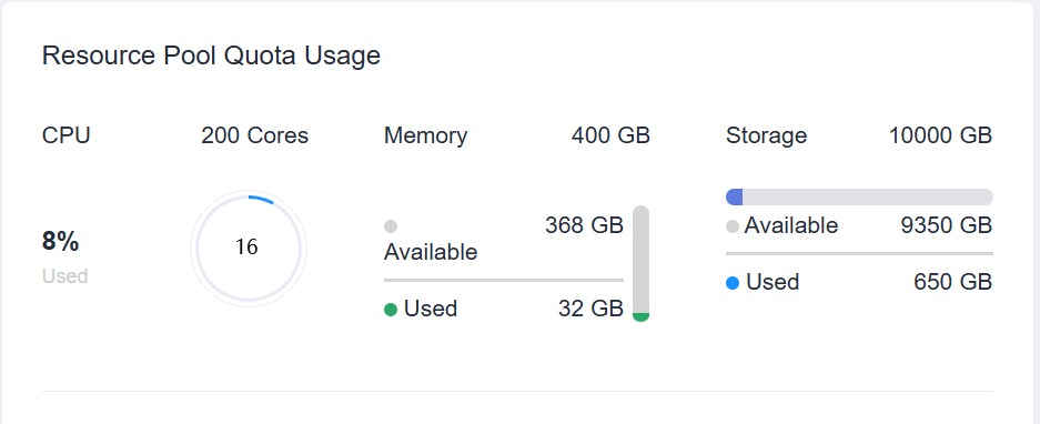 We have got 200 Cores , 400GB Ram, And 10000GB storage from NDC.